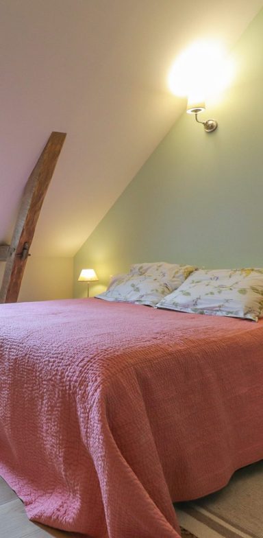 La chambre verte, conçue pour accueillir trois personnes, offre un lit double et un lit simple.