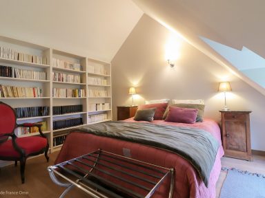 Le sol en parquet de chêne ajoute une touche de chaleur à la pièce, tandis que le mur ancien contribue à son caractère unique.